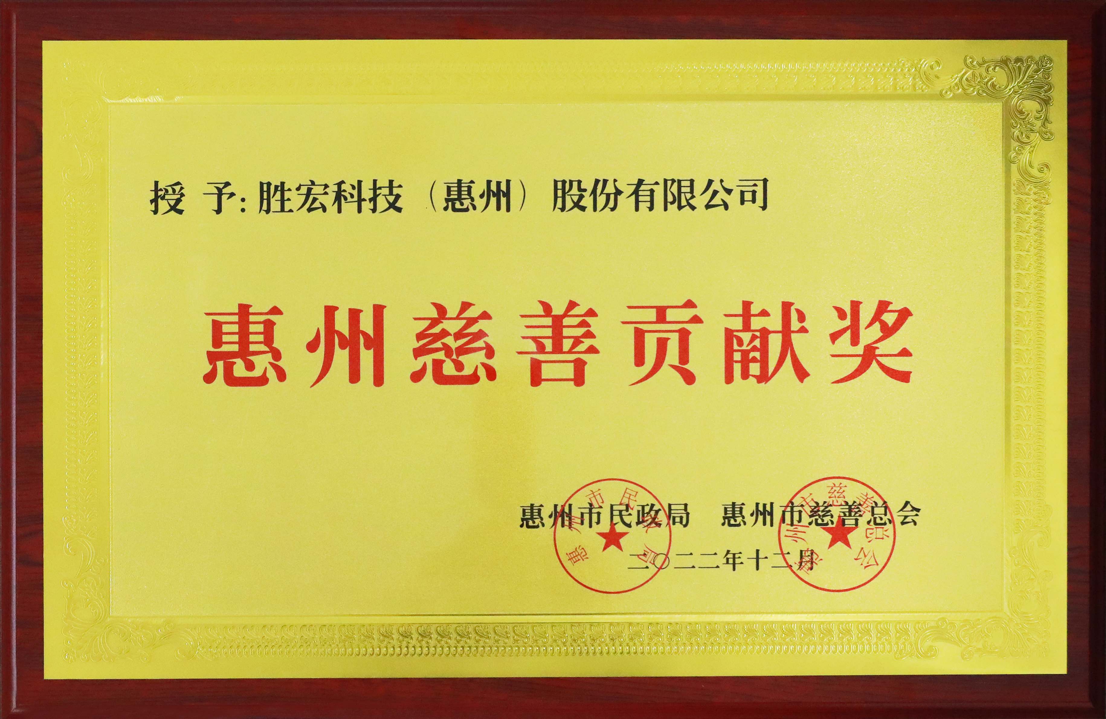 获得2022年惠州慈善孝顺奖